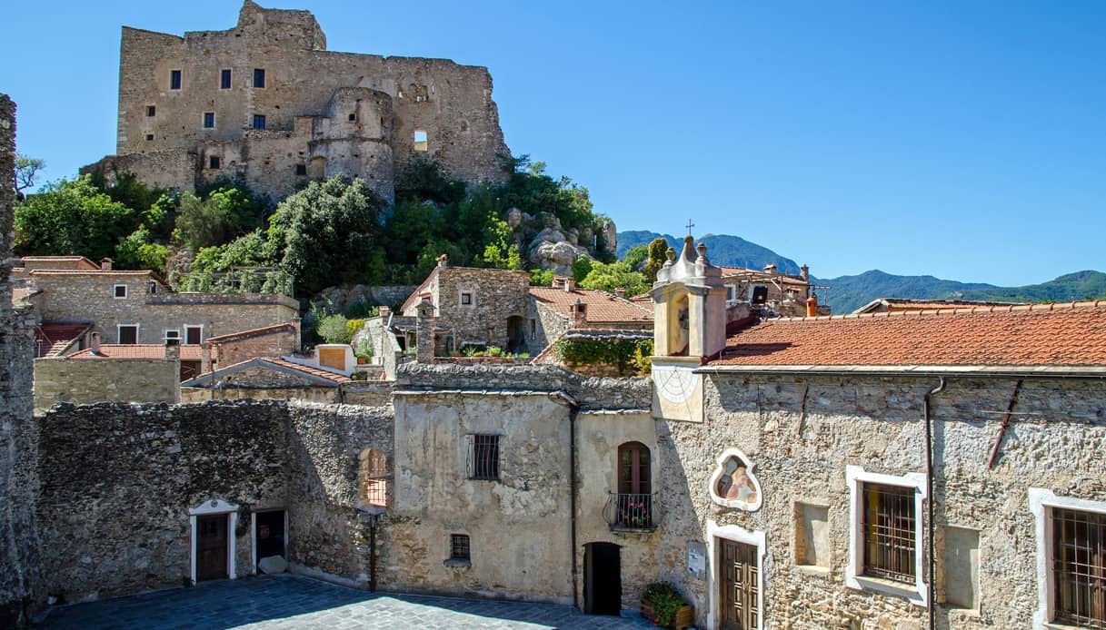 Un piccolo mondo antico è Castelvecchio di Rocca Barbena, sulla Strada del Vino e dell’Olio, borgo murato della Val Neva vegliato dal Castello del XI secolo.