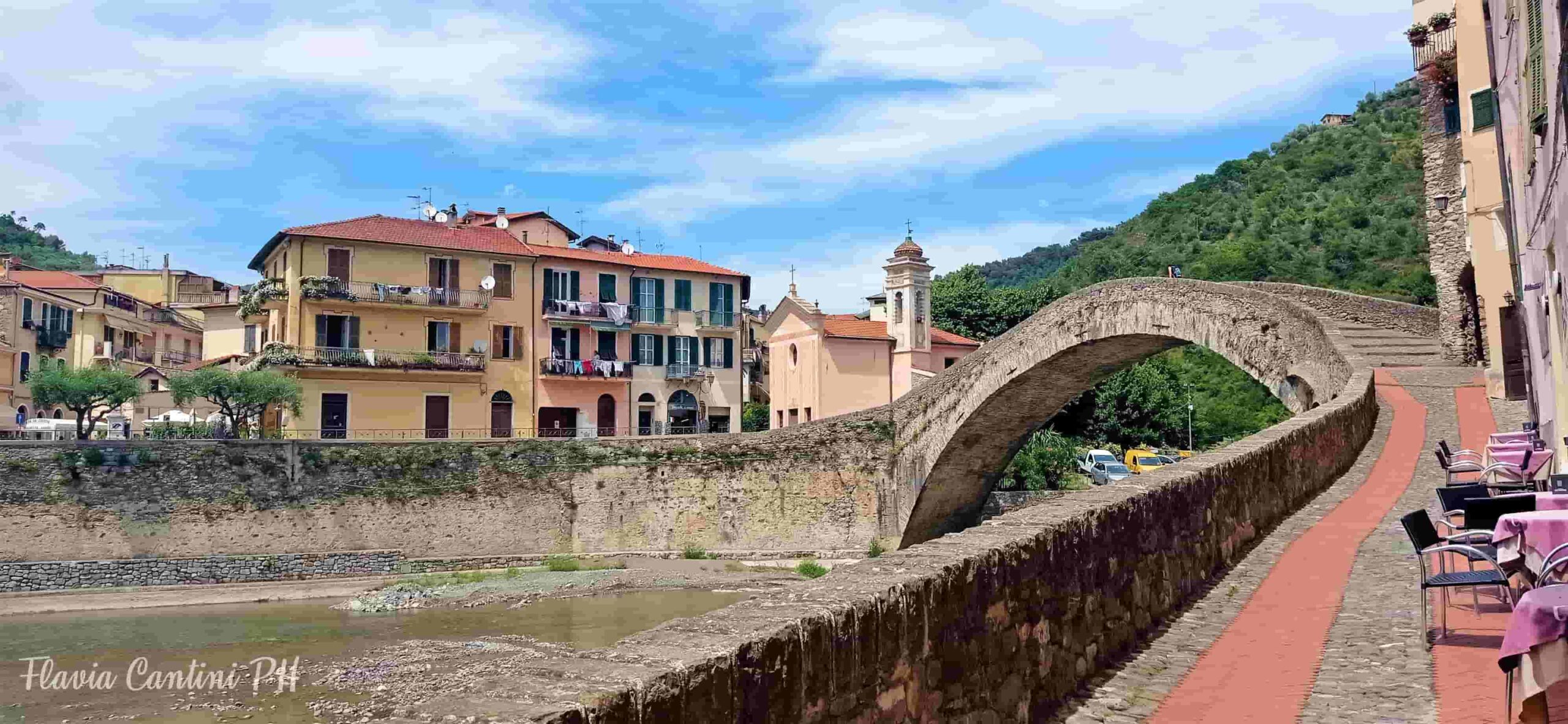 A 11 chilometri da Ventimiglia, Dolceacqua è un romantico borgo che affascina già alla prima occhiata facendosi annunciare dall’iconico ponte a schiena d’asino, il quattrocentesco “Ponte Vecchio” che solca il torrente Nervia.