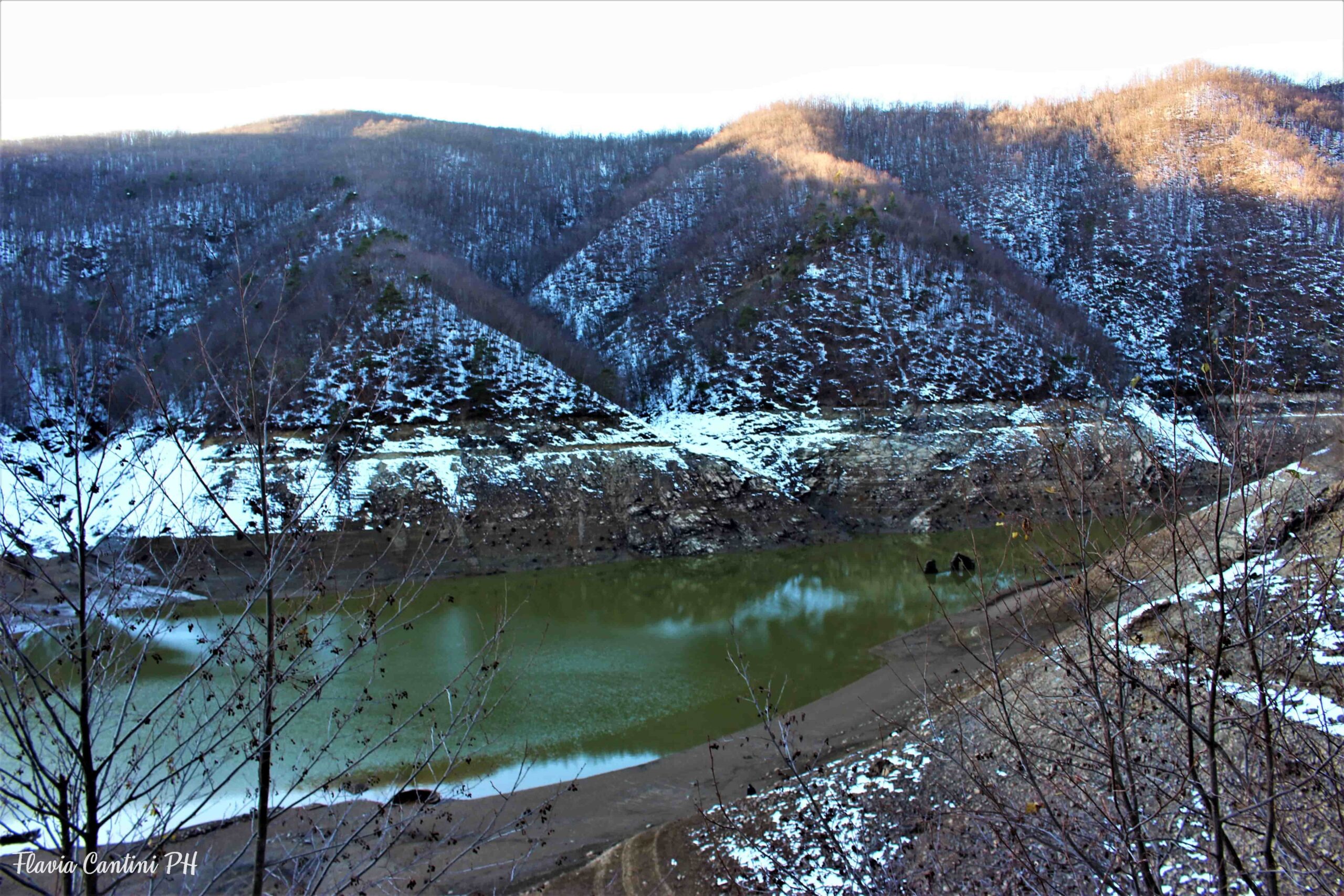 Sotto le sue acque, rimangono le rovine dell’antico borgo ormai sommerso che si riaffacciano alla luce circa ogni quattordici anni, quando la diga viene svuotata per la manutenzione.